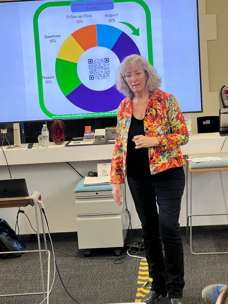 - Authentic Communication Through the Sale Cycle: I love helping entrepreneurs, small business owners, and sales team fast forward their sales skills so they can do what they are truly passionate about. I have worked with a variety of focused groups, construction workers, chambers of commerce, a high-end furniture company, summer-time charter high school programs, Albuquerque Arts Hub, the American Indian Chamber of Commerce, and a variety of coaches who have attended my open courses.